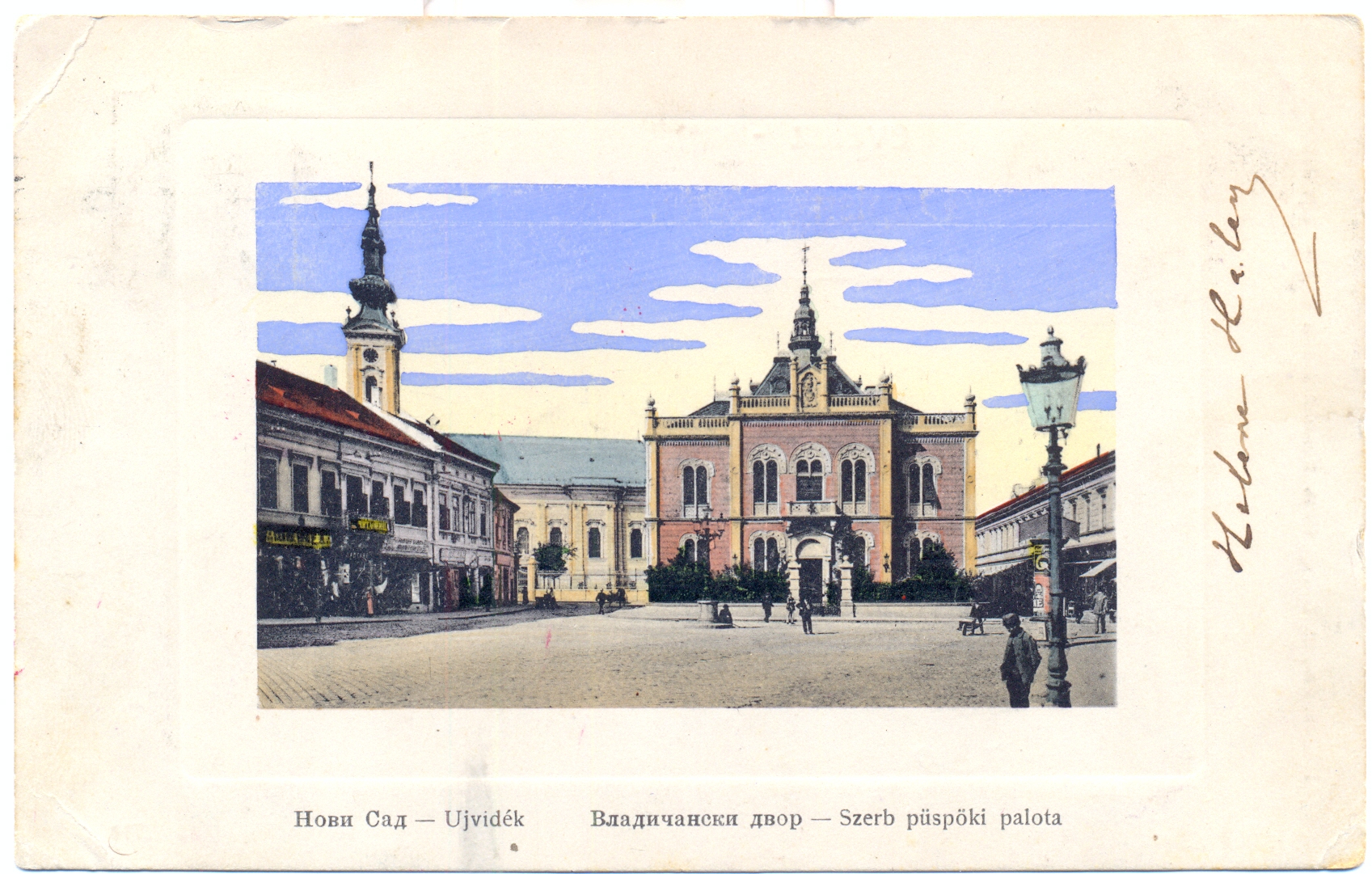 Ispred Vladičanskog dvora nekada se nalazio krst od ružičastog mermera, ali je on premešten u portu Saborne crkve. Na njegovom mestu 1984. god. postavljen je spomenik pesniku Jovanu Jovanoviću Zmaju, u prirodnoj veličini. Regent Aleksandar Karađorđević je tokom posete Novom Sadu 1919. god. boravio u Episkopskom dvoru i sa balkona se obratio okupljenim građanima.