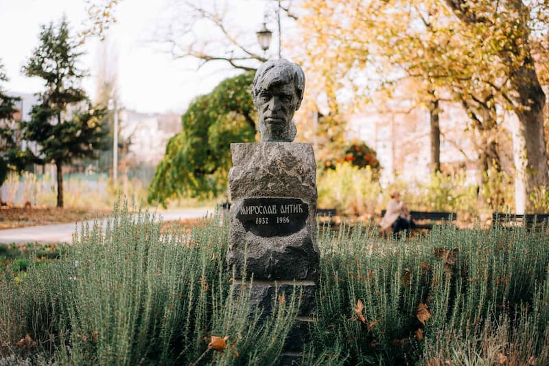 Bista Miroslava Antića, glava od bronze 54/36 cm, postavljena je na piramidalnom postamentu od kamena 165/63/68 cm. Na postamentu je ploča nepravilnog oblika, a delo je rad vajara Pavla Radovanovića. Bista je postavljena 1992. god, u Dunavskom parku u Novom Sadu. Miroslav Mika Antić (1932-1986) bio je književnik, novinar Dnevnika, urednik Nevena, autor više igranih i dokumentarnih filmova.