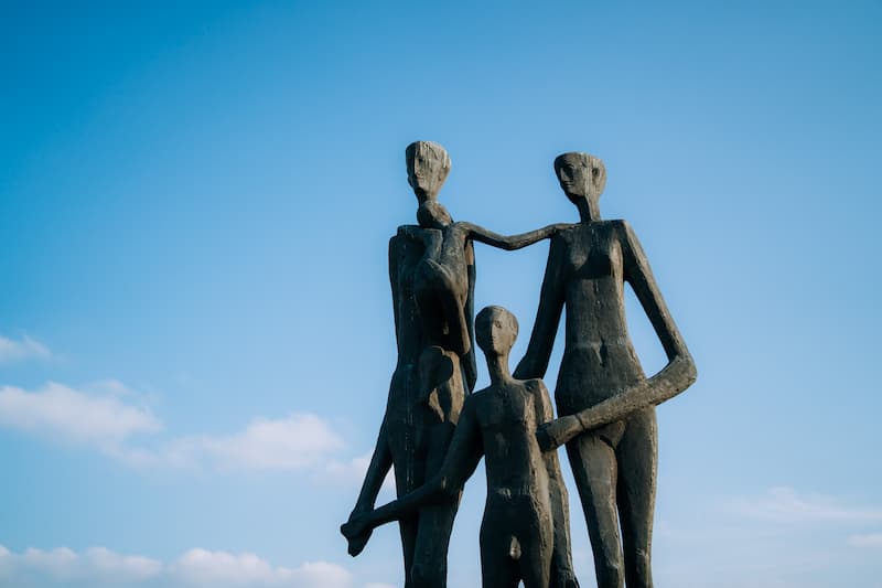 Skulptura Porodica, spomenik žrtvama racije, napravljena je od bronze, visine 400 cm, na postamentu od opeke 20/22/120 cm. Ispod skulpture se nalazi ploča od bronze 15/71 cm, na kojoj su ispisane godine 1941-1945, a niže na donjem delu postamenta nalazi se ploča od bronze 15/601 cm, sa tekstom na srpskom, mađarskom i slovačkom jeziku: Žrtvama fašizma – a fasizmus aldozatainak Obetiam fasizmu. Ator je vajar Jovan Soldatović. Spomenik je postavljen 1971. god, na Keju žrtava racije u Novom Sadu. Početkom 1992. god.spomenik je upotpunjen sa četiri bronzane ploče (54/59 cm) koje daju osnovne informacije o događaju i sa još 66 ploča (35/29 cm), na kojima su ispisan imena žrtava racije. Novosadska racija predstavlja masovnu likvidaciju Srba, Jevreja i Roma, koju su januara 1942. god. izvele mađarske vlasti u Novom Sadu, kada je za mesec dana ubijeno između 3000 i 4000 ljudi.