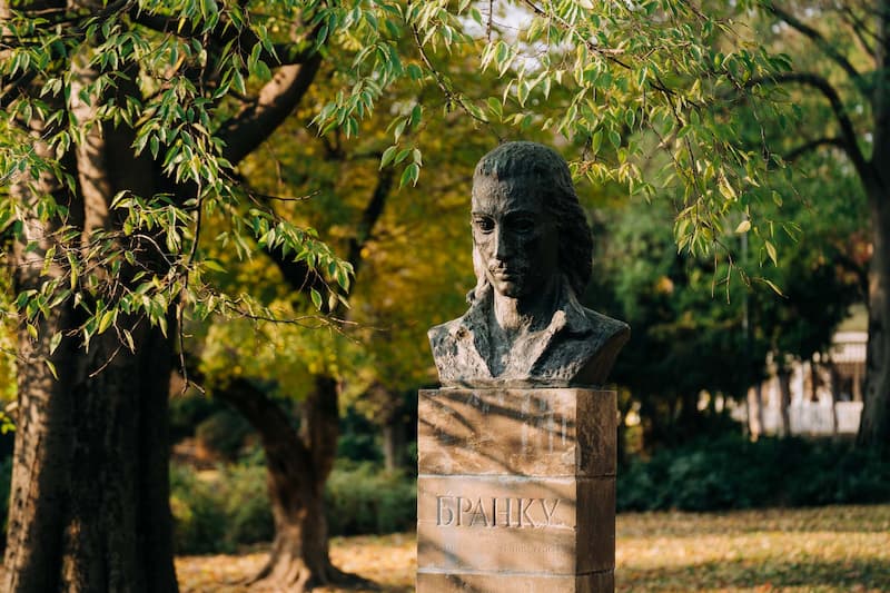 Bista Branka Radičevića, poprsje od bronze 80/60 cm, postavljena je na postamentu od kamena 154/56/40 cm. Predstavlja rad vajarke Ivanke Acin. Bista je postavljena prvi put 1953. na Lenjinovom trgu (današnji Trg Mladenaca), a od 1974. god. se nalazi u Dunavskom parku u Novom Sadu. Branko Radičević (1824-1853) bio je lirski pesnik, romantičar, pristalica Vuka Karadžića.