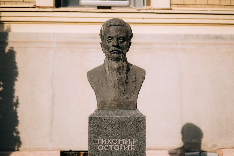 Bista Tihomira Ostojića, poprsje od bronze 80/50 cm, na postamentu od mermera 130/40/30 cm, rad je vajara Nikole Jankovića iz Kragujevca. Postavljena je 1976. god, ispred zgrade Matice srpske u Novom Sadu. Tihomir Ostojić (1865-1921) bio je profesor i pisac, sekretar Matice srpske i urednik Letopisa.